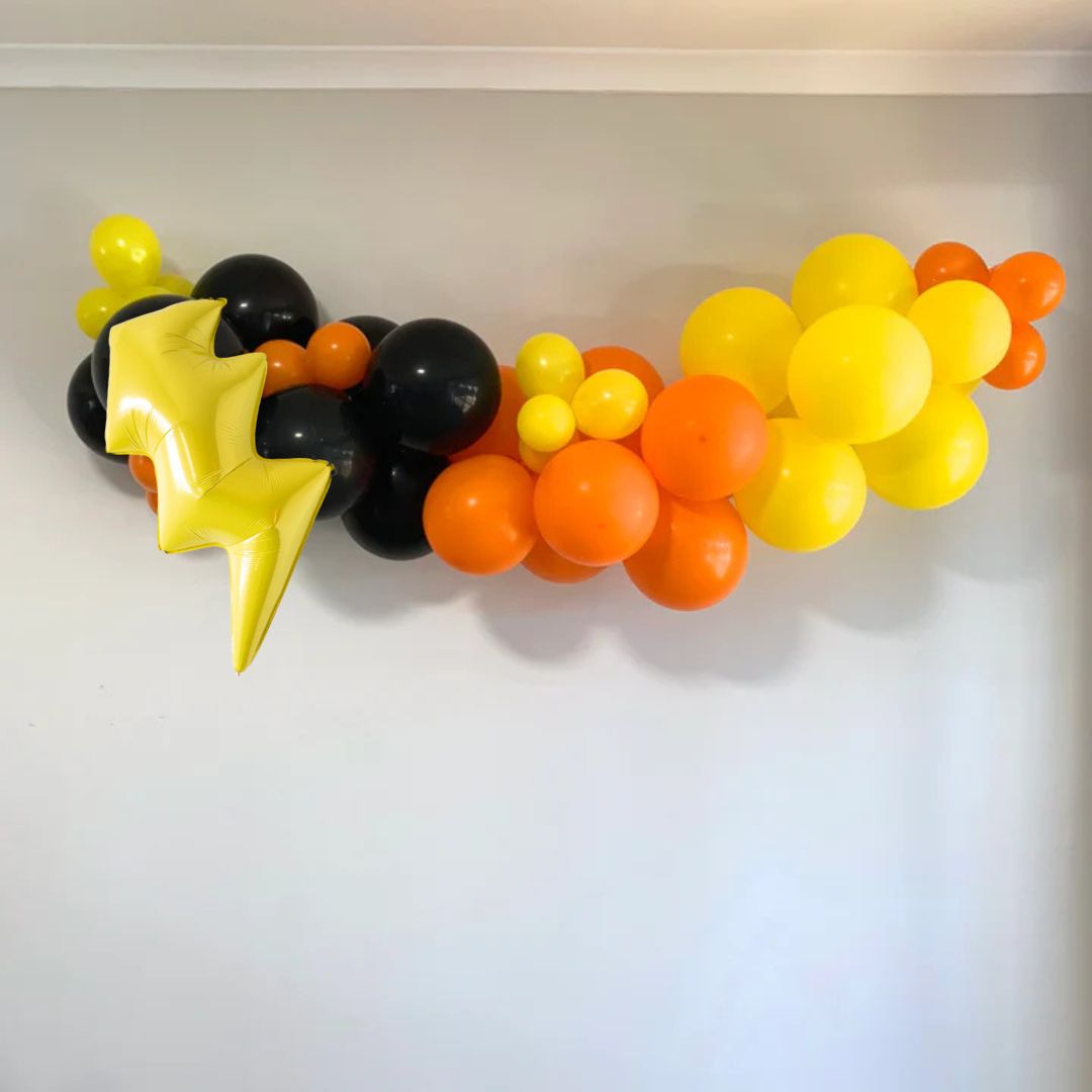 Light up your Halloween with our Thunderbolt Balloon Cloud Kit! This kit includes black, orange, and yellow balloons in multiple sizes, plus a striking lightning bolt foil balloon. Enough to build a bold 6ft balloon cloud, complete with balloon tape, glue dots, and ribbon.